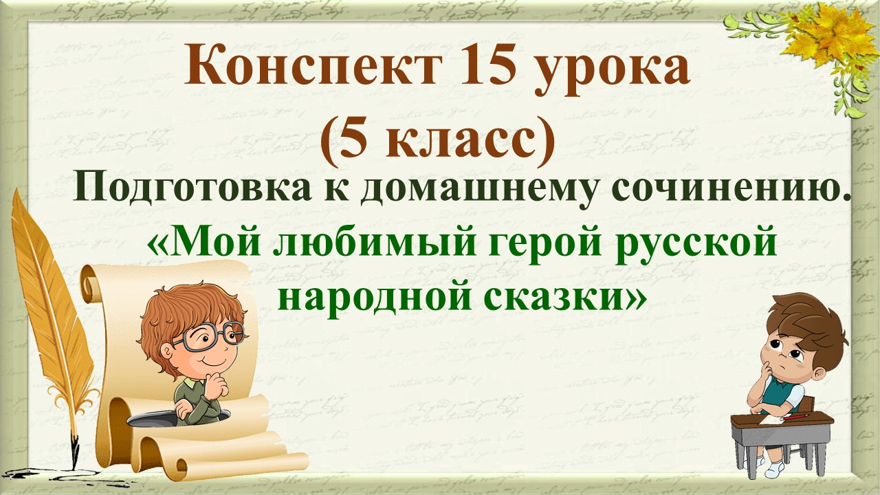 15 урок 1 четверть 5 класс. Подготовка к домашнему сочинению. «Мой любимый герой русской народной ск