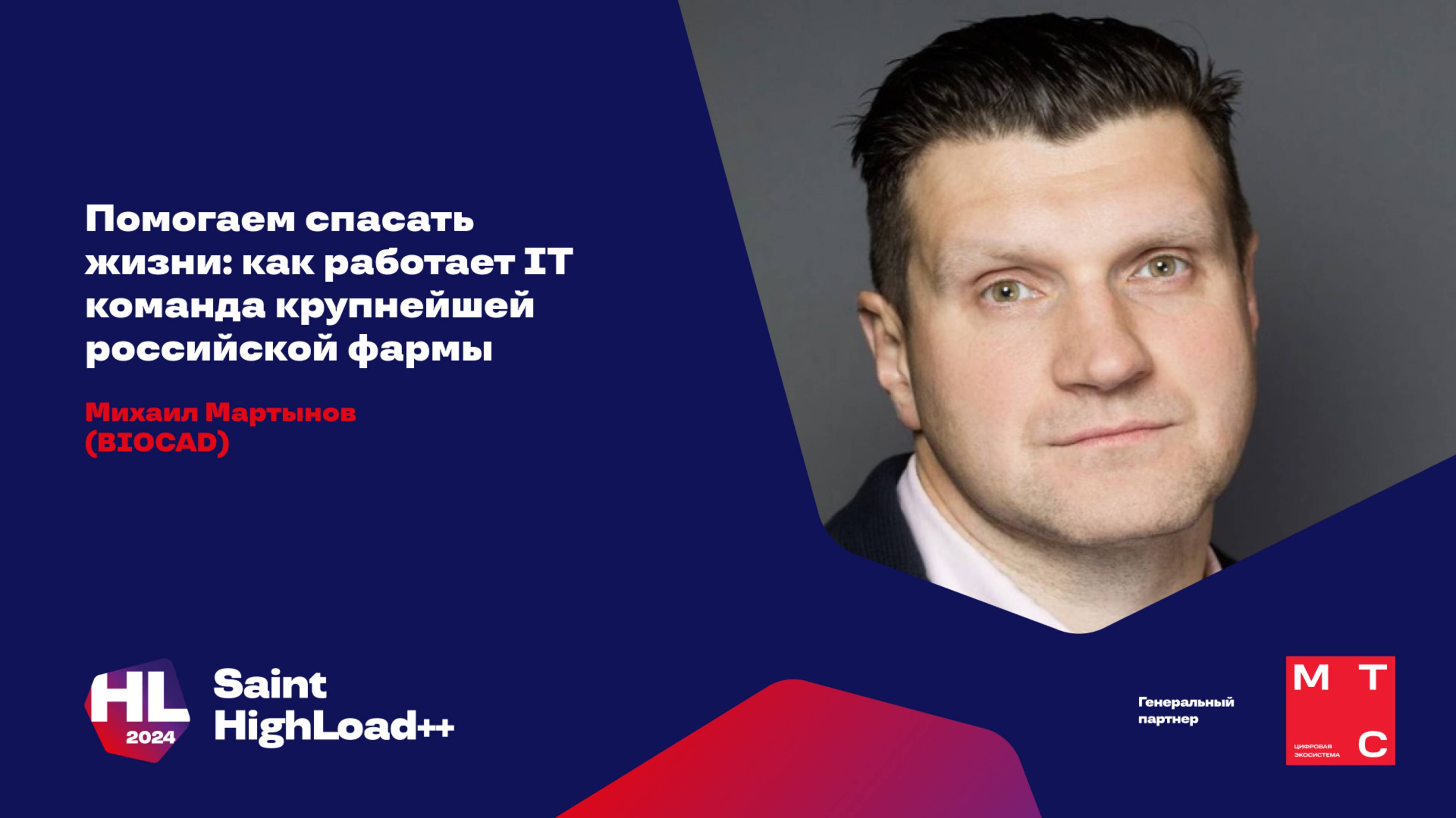 Приглашаем на конференцию HighLoad++ 2025, которая пройдет 6 и 7 ноября в Москве! Программа, подробности и билеты по ссылке: https://highload.ru/moscow/2025 ________ МТС — генеральный партнёр конференции Saint HighLoad++ 2024. ________ . Профессиональная конференция разработчиков высоконагруженных систем Saint HighLoad++ 2024 Презентация и тезисы: https://highload.ru/spb/2024/abstracts/12499 IT уже давно и плотно интегрированы во все бизнес-процессы современных компаний. В свою очередь наукоемкий бизнес, тем более такой, как фармацевтика, обязан опираться на новейшие технологии не только в плоскости непосредственного создания продукта, ... Нашли ошибку в видео? Пишите нам на support@ontico.ru