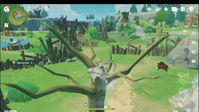 Genshin Impact дерусь с монстрами,собираю ресурсы
