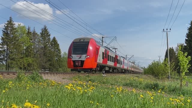 Электропоезд ЭС2Г-238 "Ласточка", перегон Гатчина-Пассажирская-Балтийская — Пудость, Ленинградская область (май 2023г.)