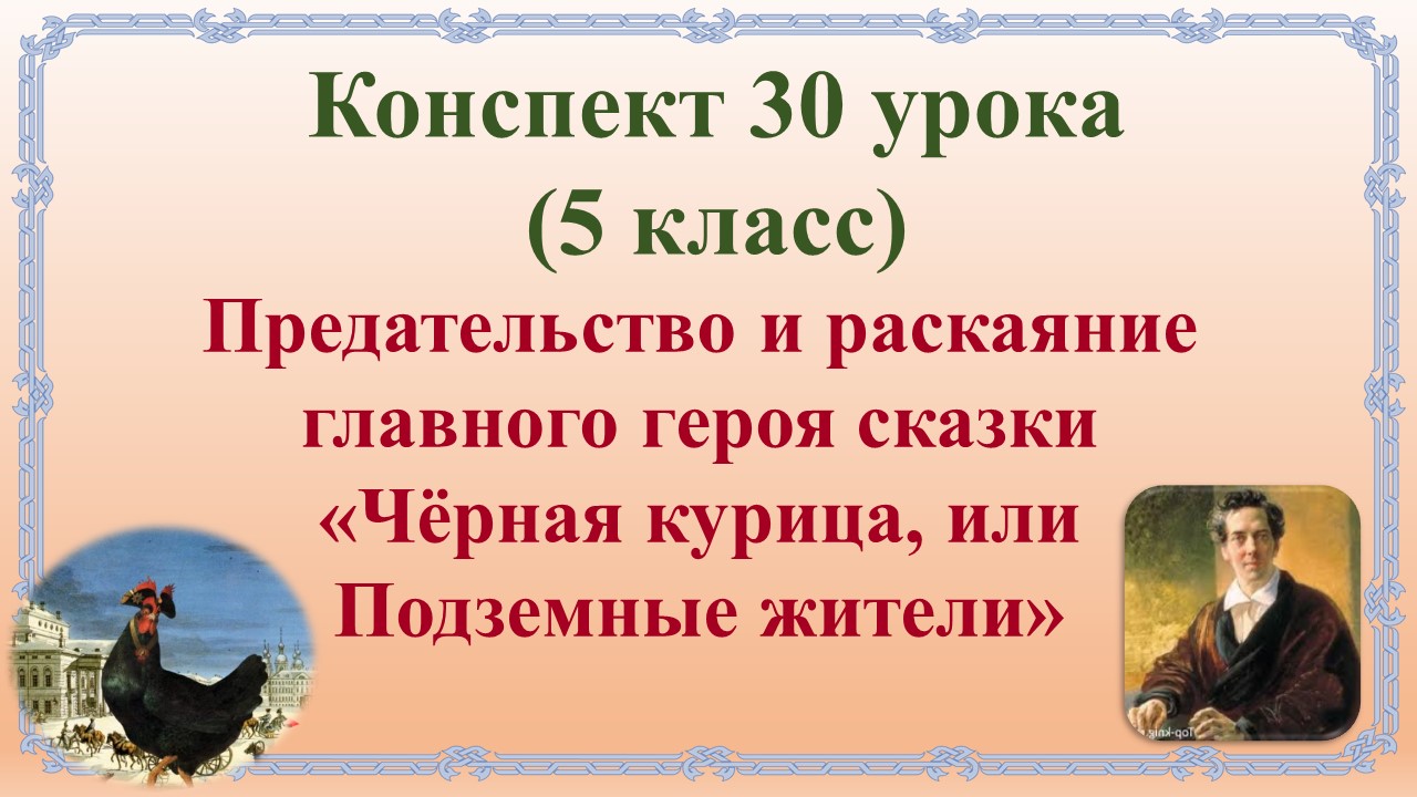 30 урок 2 четверть 5 класс. Предательство и раскаяние главного героя сказки «Чёрная курица, или Подз