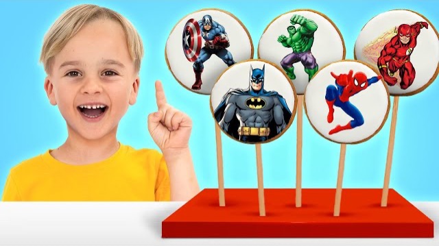 Дети притворяются, что играют с печеньем-супергероем