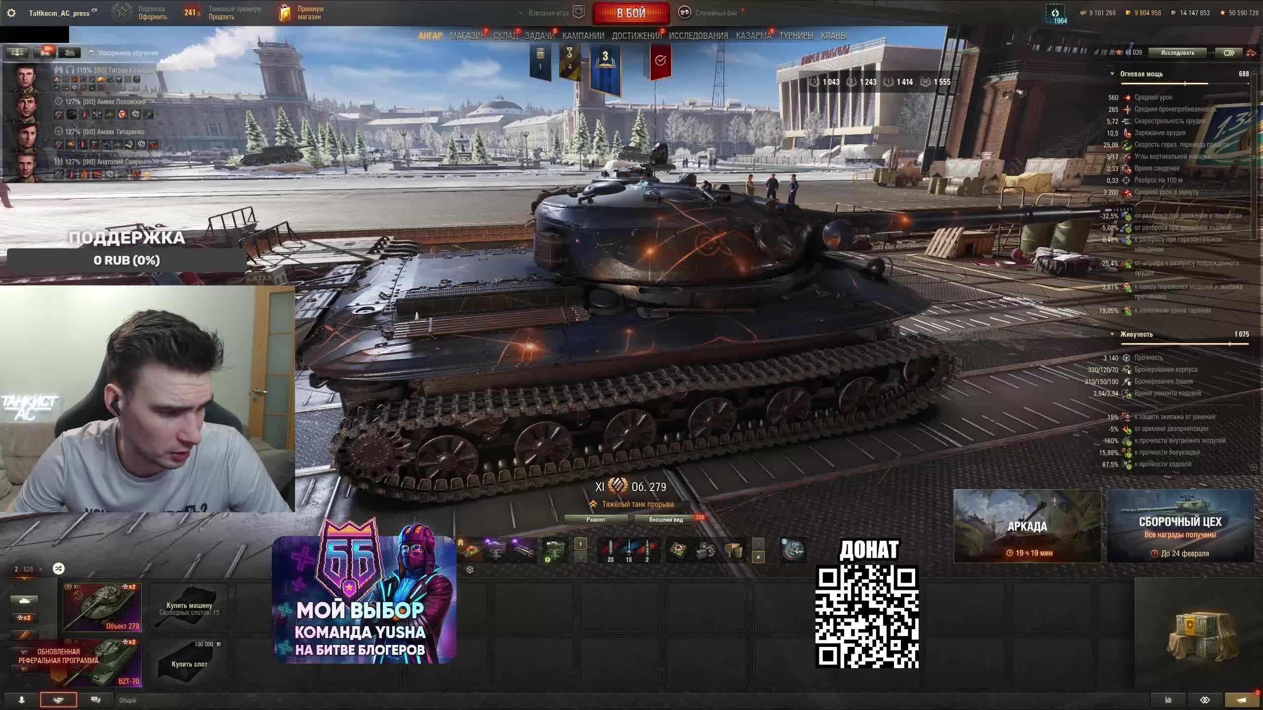 Донат http://www.donationalerts.ru/r/tahkucm_ac Сбер 2202 2062 2408 9735 напишите в чате, чтобы проверил Заказы буду катать из чата, если не будет заказов за донат Заказ за донат от 200 рублей 500 рублей приоритетная очередь и возможность заказать фул ББ 1000 рублей элита еще больше приоритета и возможность заказать фул фугасы 1500 рублей целый стрим по вашему танку примерно 3 часа, танки от 6 уровня, кроме арты. Telegram https://t.me/TaHkucm_AC Канал VK Play Live https://vkplay.live/tahkucm Канал Бусти https://boosty.to/tahkucm Канал на трово https://trovo.live/TaHkucm_AC Канал Дзен https://dzen.ru/id/62355e95d406852937d33526 Группа Вконтакте https://vk.com/tahkucm_ac Оборудование и модернизации на все танки https://docs.google.com/spreadsheets/d/16koQOrtKQKQrAy2Pgfm6GBeG8bA1tJP_7Vm78knwUXA/edit#gid=422106233 Настройки игры в скринах https://dzen.ru/a/YmFvHhJ9yi3rZO5M Моды со скринами установки https://vk.com/topic-136212047_47639792 По поводу рекламы писать в личку https://vk.com/v_xarlamow Всем привет! Меня зовут Виктор, мой ник TaHkucm_AC. На моем канале стрим мира танков каждый день с 9 до 12 мск. Так же иногда стримлю вечером в произвольное время, чтобы не пропустить подпишитесь на оповещения в телеге или вк (ссылки выше). Играю в танки с декабря 2011 года, а стримить начал в начале 2017 года. Во время стримов общаюсь с чатом, помогаю советами по игре, объясняю тактику. Средняя статистика 65% побед и 4-5к вн8. Фан кланы SLPFR - Командиры marmyn и artlay - из требований только то, чтобы вы часто играли в танки. Укреп 10 уровня. Участвуют в ивентах на ГК, как минимум чтобы собрать пропуск на аукцион. L-DS - Командир DarkSpawn13. Укреп 10 уровня, плюхи по кд SVLFE - Командир Shadowlions. Требуется Team Speak (программа связи) для взводов и клановых покатушек. Участвуют в ивентах на ГК, как минимум чтобы собрать пропуск на аукцион. укреп 10 уровня