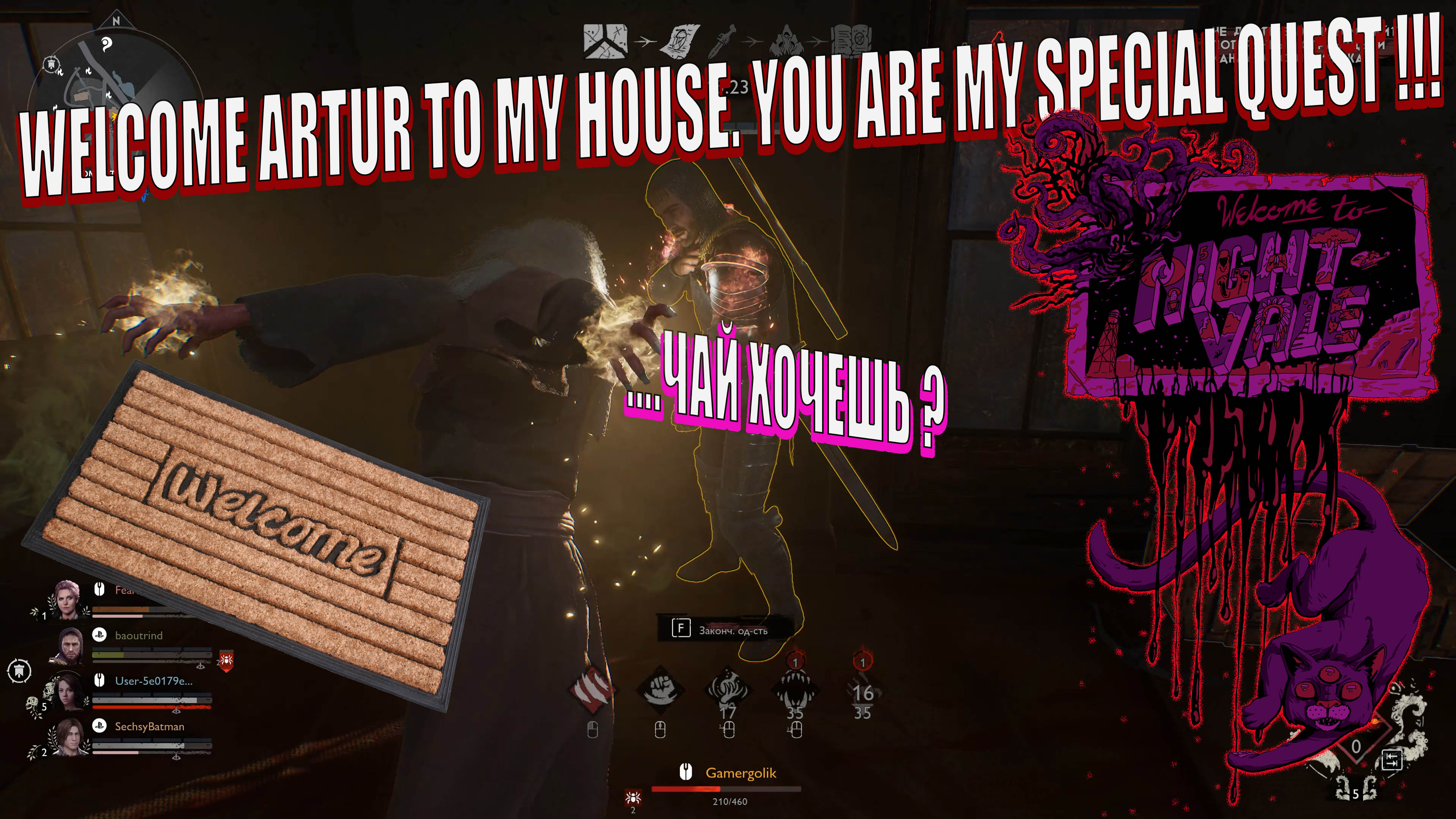 Evil Dead The Game. Бабка заманила Артура в свою хибару,он там и откис !!!