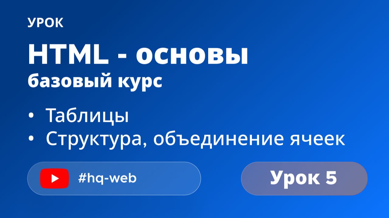 📌 В этом уроке мы научимся создавать таблицы в HTML — аккуратные, структурированные и понятные. Вот что разберём подробно: ✔ Базовая структура таблицы: table, tr, td, th ✔ Заголовок таблицы через caption ✔ Семантическое разделение: thead, tbody, tfoot ✔ Объединение ячеек при помощи colspan и rowspan` 🎯 После урока вы будете уверенно верстать таблицы любой сложности: от простых списков до сложных сеток с объединёнными ячейками. 🔥 Хостинг - https://bit.ly/3OO0QfG ✈️ Telegram - https://t.me/xeqtr_zhg 📪 VK - https://vk.com/hq_web Написать мне 📧 xeqtr.zhg@gmail.com