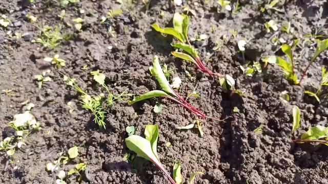 Когда свекла взошла и нарастила 4-5 настоящих листочков, можно её проредить. Свекла отлично приживается (в отличии от моркови)