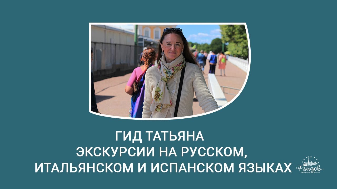 Позвоните нам +7 (812) 501-82-23 или напишите https://wa.me/79219358357. Татьяна Гид (русский, итальянский и испанский язык) Станет отличным проводником для семейных пар, небольшой компании подруг или друзей. Ее экскурсионные программы очень гибкие, в случае необходимости рассказ может стать подробнее или наоборот ограничиться самыми значимыми и интересными моментами. Умеренный темп позволит информации усвоиться равномерно, не оставив пробелов.станет отличным проводником для семейных пар, небольшой компании подруг или друзей. Ее экскурсионные программы очень гибкие, в случае необходимости рассказ может стать подробнее или наоборот ограничиться самыми значимыми и интересными моментами. Умеренный темп позволит информации усвоиться равномерно, не оставив пробелов. Мы в соц.сетях: www.instagram.com/7guides vk.com/7guides www.facebook.com/7guides www.youtube.com/channel/UCj3vZXefZSLq5kfYvYR-_pw?view_as=subscriber ok.ru/group/55375818391799 twitter.com/7_guides www.pinterest.ru/7guides