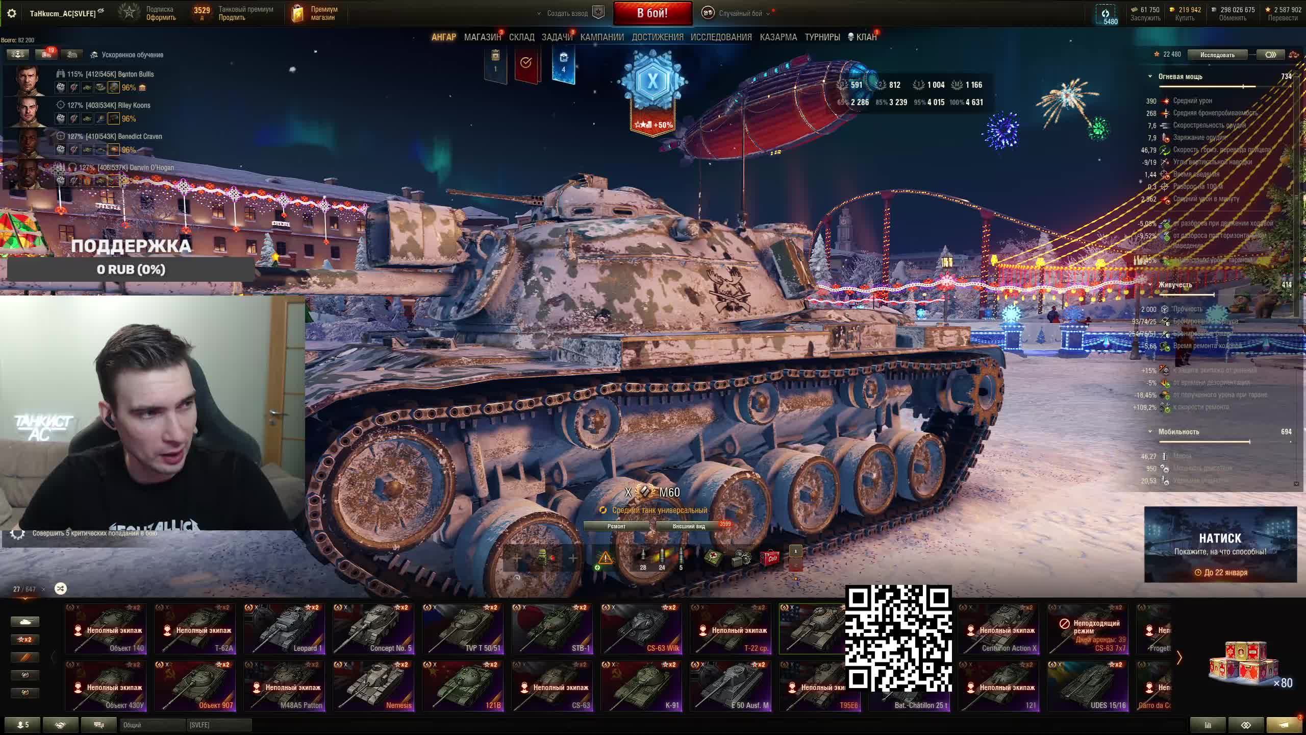 Поддержать стримера http://www.donationalerts.ru/r/tahkucm_ac Сбер без комиссии 2202 2062 2408 9735 напишите в чате, чтобы проверил Telegram https://t.me/TaHkucm_AC Канал Ютуб https://www.youtube.com/c/TaHkucmAC Канал VK Play Live https://vkplay.live/tahkucm Канал Бусти https://boosty.to/tahkucm Канал на трово https://trovo.live/TaHkucm_AC Канал Дзен https://dzen.ru/id/62355e95d406852937d33526 Группа Вконтакте https://vk.com/tahkucm_ac Оборудование и модернизации на все танки https://docs.google.com/spreadsheets/d/16koQOrtKQKQrAy2Pgfm6GBeG8bA1tJP_7Vm78knwUXA/edit#gid=422106233 Настройки игры в скринах https://dzen.ru/a/YmFvHhJ9yi3rZO5M Моды со скринами установки https://vk.com/topic-136212047_47639792 По поводу рекламы писать в личку https://vk.com/v_xarlamow Всем привет! Меня зовут Виктор, мой ник TaHkucm_AC. На моем канале стрим мира танков каждый день с 8 или 9 по мск. Так же иногда стримлю вечером в произвольное время, чтобы не пропустить подпишитесь на оповещения в телеге или вк (ссылки выше). Играю в танки с декабря 2011 года, а стримить начал в начале 2017 года. Во время стримов общаюсь с чатом, помогаю советами по игре, объясняю тактику. Средняя статистика 65% побед и 4-5к вн8. Фан кланы SLPFR - Командиры marmyn и artlay - из требований только то, чтобы вы часто играли в танки. Укреп 10 уровня. Участвуют в ивентах на ГК, как минимум чтобы собрать пропуск на аукцион. L-DS - Командир DarkSpawn13. Укреп 10 уровня, плюхи по кд SVLFE - Командир Shadowlions. Требуется Team Speak (программа связи) для взводов и клановых покатушек. Участвуют в ивентах на ГК, как минимум чтобы собрать пропуск на аукцион. укреп 10 уровня