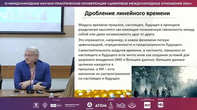 Доклад "Формы времени в ИИ, науке и образовании" на конференция "ЦИФРОВЫЕ МЕЖДУНАРОДНЫЕ ОТНОШЕНИЯ 2024" в МГИМО 01.11.2024 г.
