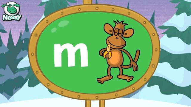 Веселые монстрики под ритмичную музыку проговоаривают английский алфавит.