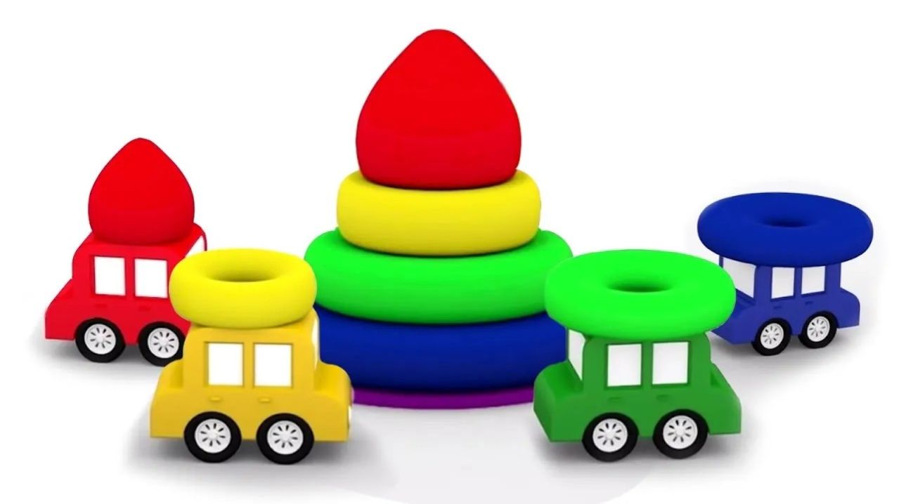 Машинки для детей 🚗 Собираем цветную пирамидку | Учим цвета