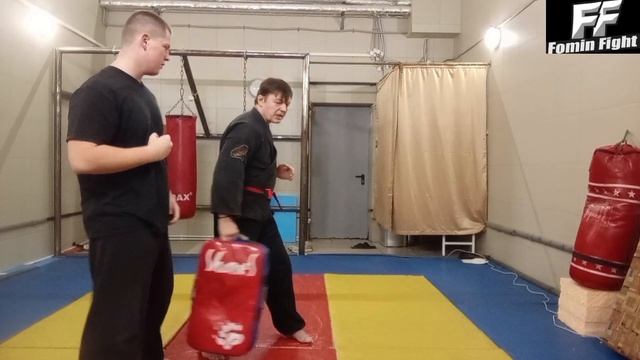 фрагмент индивидуальной тренировки, боковой удар передней ногой