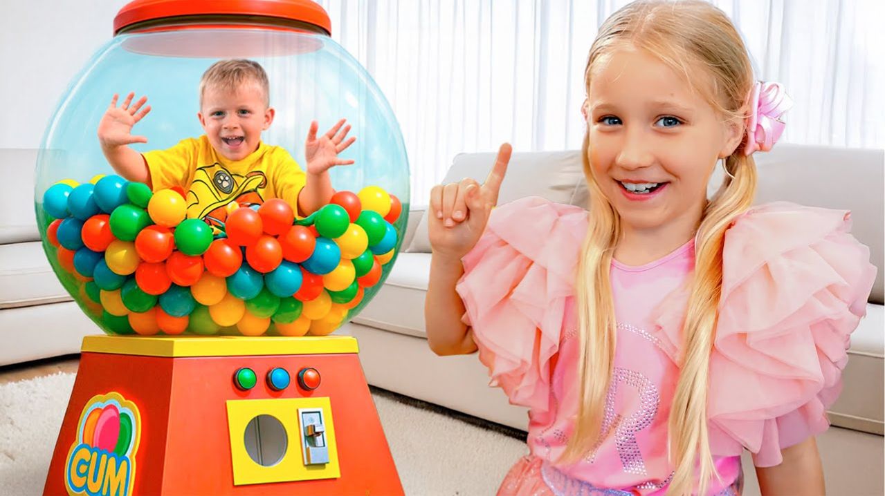 Оливер в автомате с жвачками! Челлендж для детей