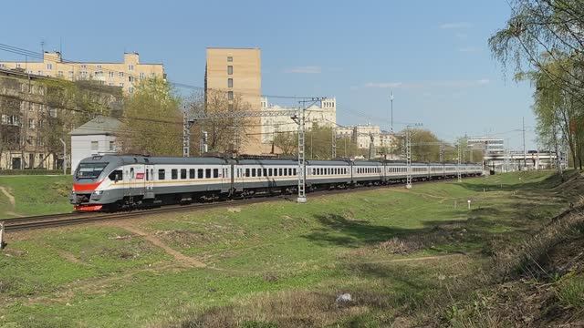 Электропоезд ЭП2Д-0041, перегон Подмосковная - Тушино, г. Москва (апрель 2023г.)