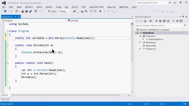 Ошибки на этапе выполнения 00:00 — Об ошибках в общем. 02:10 — Классический пример: деление на ноль. 05:40 — Примеры ошибок. NullReferenceException, IndexOutOfRangeException. 08:00 — Окно стека. Стек вызовов – последовательность всех методов, вызвавших друг друга. 09:35 — Сложные исключения, возникающие при написание некачественной программы. 13:20 — Причины ошибок. Нарушена логика, вы что-то сделали не так. 14:15 — Ошибки, вызванные внешними источниками. Пользователь, дающий неверный ввод. 15:20 — Обработка некорректного ввода пользователя. Условия (if; else). Блок try-catch.