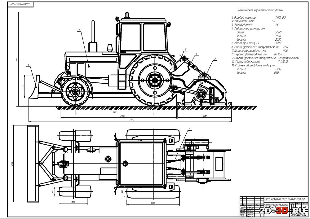 Готовый проект можно скачать со страницы - https://www.2d-3d.ru/2d-galereia/stroitelnie-mashini/4664-dorozhnaya-freza-na-baze-traktora.html Разработка фрезерного оборудования дорожного фрезера на базе трактора МТЗ-80 Техническая характеристика фрезы 1. Базовый трактор МТЗ-80 2. Мощность, квт 59 3. Тяговый класс 1,4 4. Габаритные размеры, мм Длина 5880 Ширина 1750 Высота 2350 5. Масса трактора, кг 3300 6. Масса фрезерного оборудования, кг 200 7. Ширина фрезерования, мм 1100 8. Глубина фрезерования, мм до 150 9. Привод фрезерного оборудования гидравлический 10. Марка гидромотора Г-210.12 11. Рабочее оборудование отвал, мм Ширина 2100 Высота 650 #чертежи #чертеж #Трактор #AutoCAD #Чертёж #проект #проекты #dwg #Компас #Автокад #dwg #cdw #Расчёты #Расчет #МТЗ-80 #Диплом #Курсовой #Курсовая #Студент #Учёба #Обучение #Дипломная #Дипломный #Фреза #Дорожнаяфреза 2d-3d.ru
