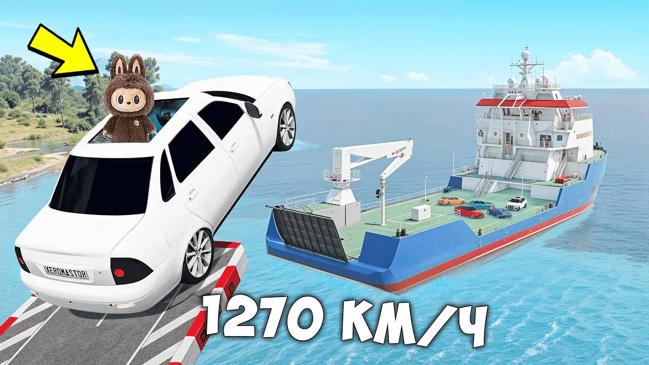 СМОЖЕТ ЛИ ЛАБУБУ ТАЧКА ЗАПРЫГНУТЬ НА КОРАБЛЬ В BEAMNG DRIVE!