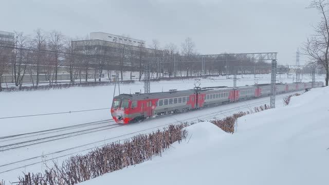 Электропоезда ЭД4М-0050 и ЭД4МК-0048, перегон Коломенское - Москва-Товарная-Павелецкая, г.Москва (январь 2022г.)