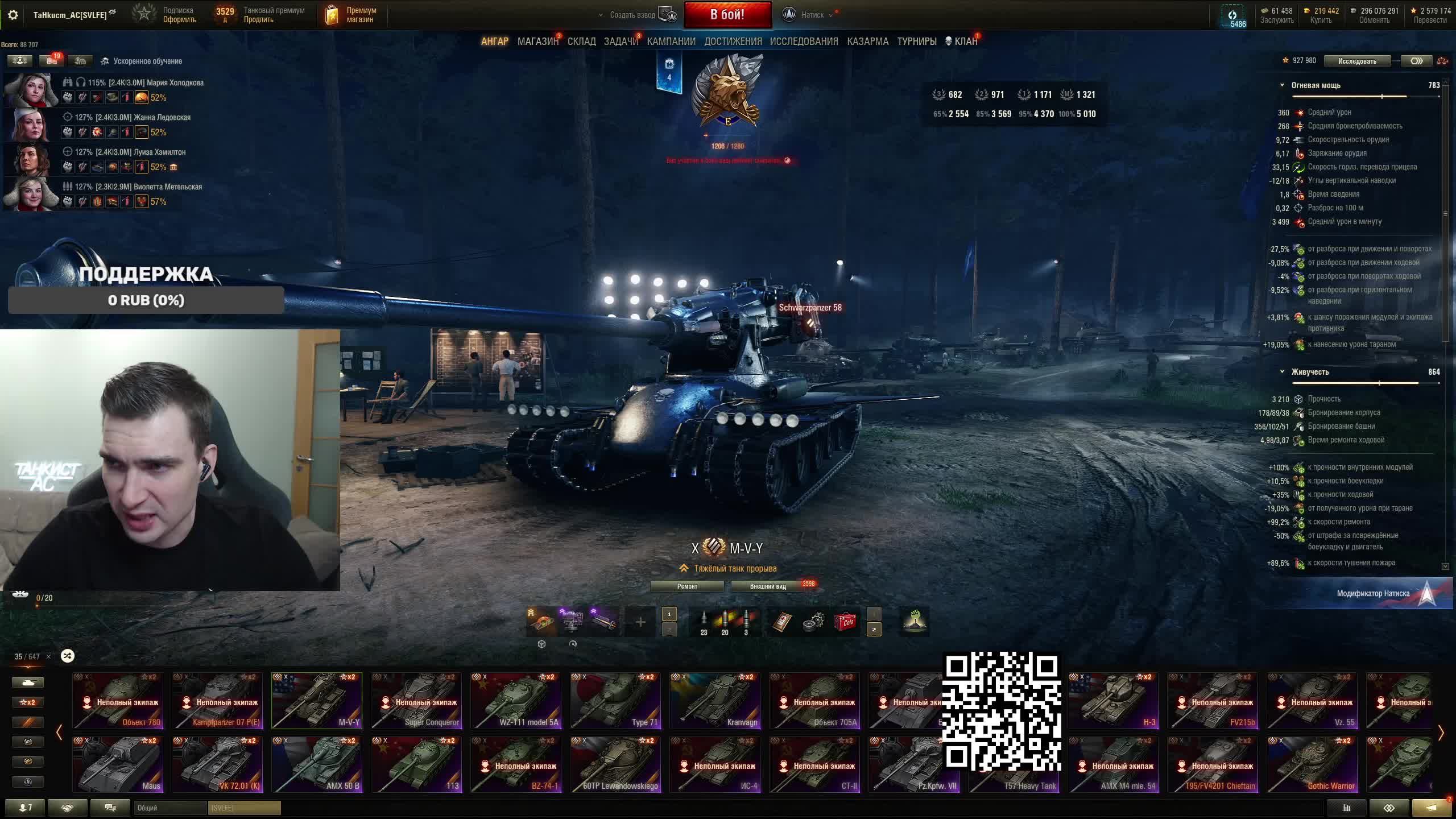 Поддержать стримера http://www.donationalerts.ru/r/tahkucm_ac Сбер без комиссии 2202 2062 2408 9735 напишите в чате, чтобы проверил Telegram https://t.me/TaHkucm_AC Канал Ютуб https://www.youtube.com/c/TaHkucmAC Канал VK Play Live https://vkplay.live/tahkucm Канал Бусти https://boosty.to/tahkucm Канал на трово https://trovo.live/TaHkucm_AC Канал Дзен https://dzen.ru/id/62355e95d406852937d33526 Группа Вконтакте https://vk.com/tahkucm_ac Оборудование и модернизации на все танки https://docs.google.com/spreadsheets/d/16koQOrtKQKQrAy2Pgfm6GBeG8bA1tJP_7Vm78knwUXA/edit#gid=422106233 Настройки игры в скринах https://dzen.ru/a/YmFvHhJ9yi3rZO5M Моды со скринами установки https://vk.com/topic-136212047_47639792 По поводу рекламы писать в личку https://vk.com/v_xarlamow Всем привет! Меня зовут Виктор, мой ник TaHkucm_AC. На моем канале стрим мира танков каждый день с 8 или 9 по мск. Так же иногда стримлю вечером в произвольное время, чтобы не пропустить подпишитесь на оповещения в телеге или вк (ссылки выше). Играю в танки с декабря 2011 года, а стримить начал в начале 2017 года. Во время стримов общаюсь с чатом, помогаю советами по игре, объясняю тактику. Средняя статистика 65% побед и 4-5к вн8. Фан кланы SLPFR - Командиры marmyn и artlay - из требований только то, чтобы вы часто играли в танки. Укреп 10 уровня. Участвуют в ивентах на ГК, как минимум чтобы собрать пропуск на аукцион. L-DS - Командир DarkSpawn13. Укреп 10 уровня, плюхи по кд SVLFE - Командир Shadowlions. Требуется Team Speak (программа связи) для взводов и клановых покатушек. Участвуют в ивентах на ГК, как минимум чтобы собрать пропуск на аукцион. укреп 10 уровня