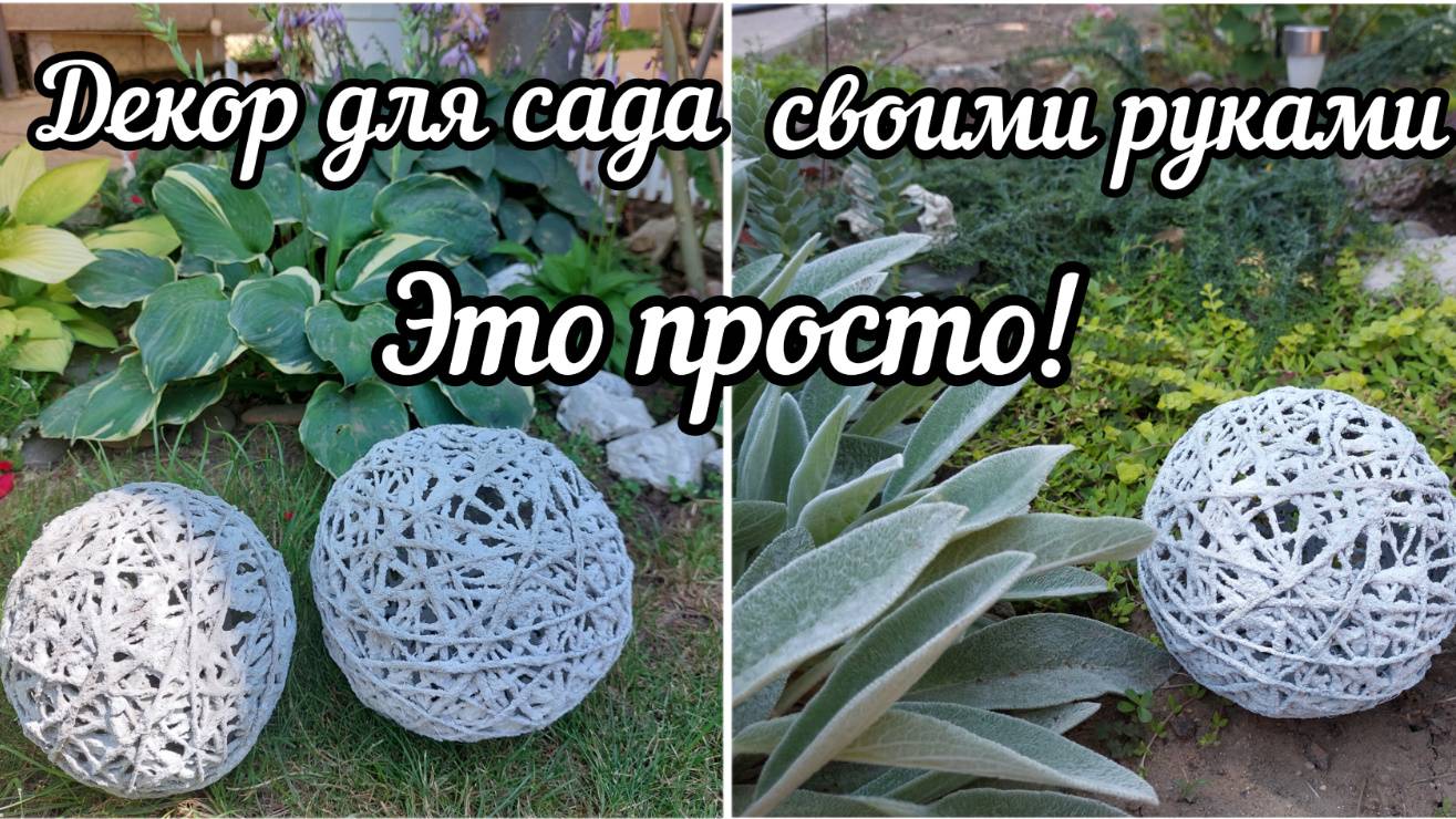 Люблю украшать свой сад своими руками, из верёвки и цемента сделала красивые шары и не сложно.