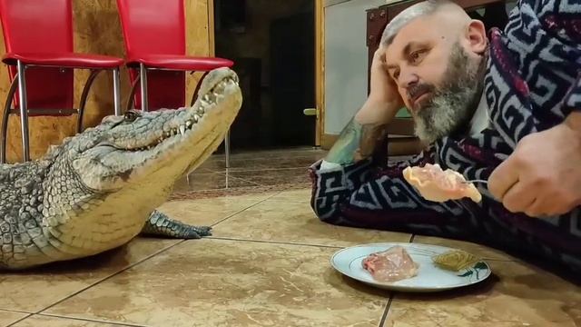 крокодил кушает мясо