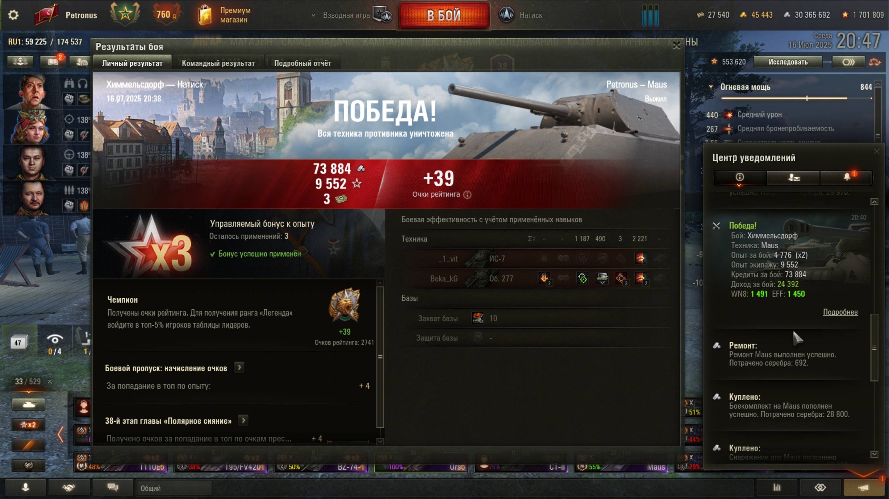 2025.07.16 Натиск =Чемпион= 3 Жандарма могут + Maus, Химмельсдорф, 2221 урон