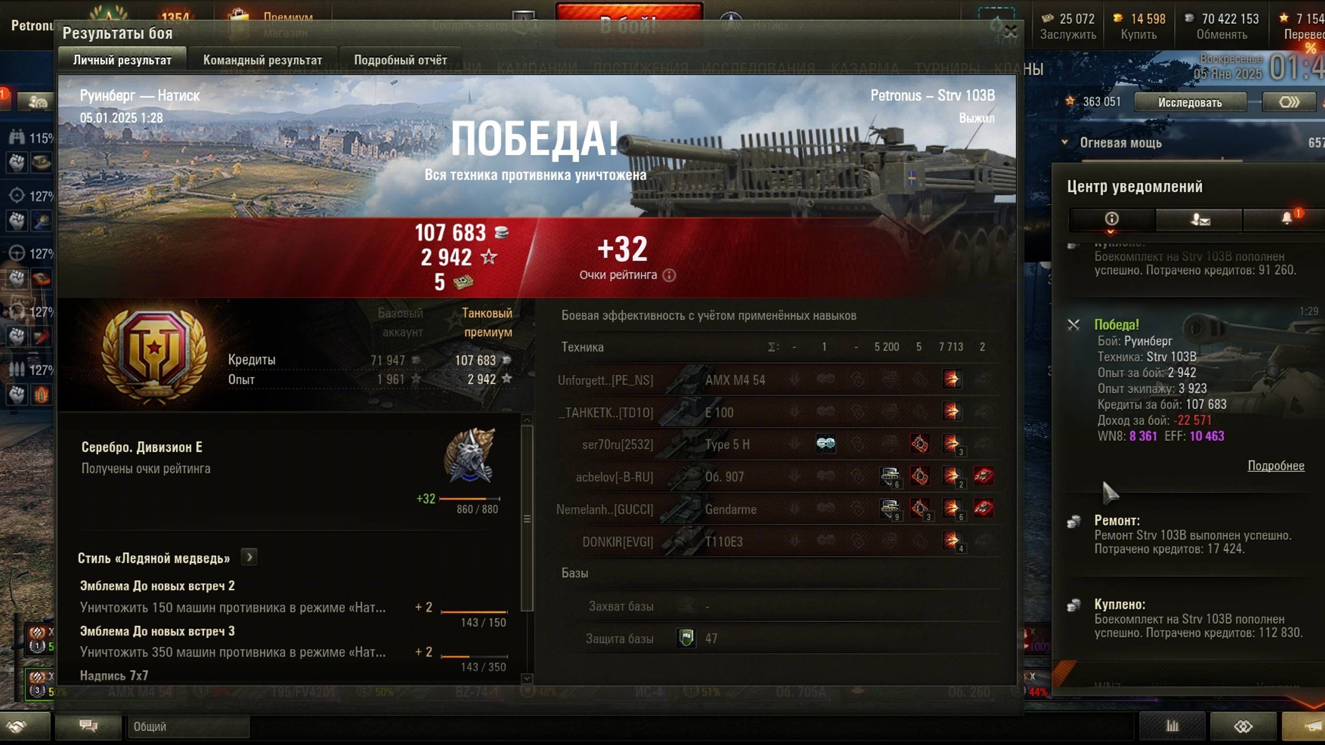 2025.01.05 Натиск, Strv 103B, Руинберг, 7713 урон, 2 фраг