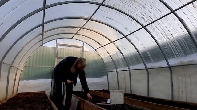 Снова на участке, снега ещё много, откапываю скважину, сею шпинат, в теплице днём жарко.