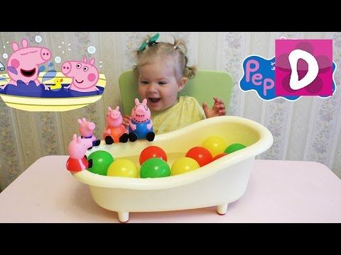 ✿ СВИНКА ПЕППА и ее семья купаются в ванночке PEPPA PIG egg surprise time bathe with balloons