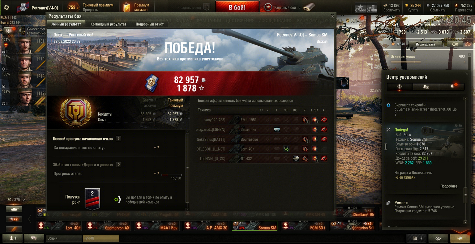 2023-03-22 Ранги 2див Somua SM, Энск, 1767урон 4фраг6