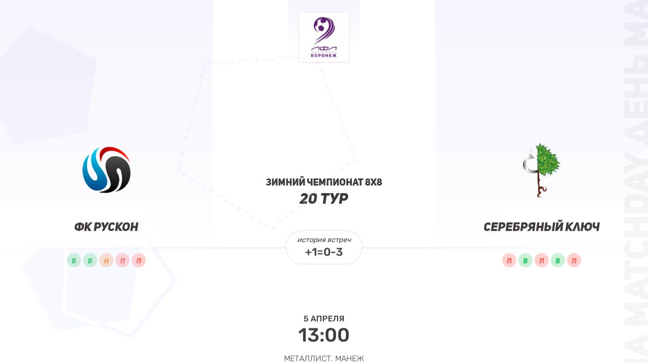 ФК Рускон × Серебряный ключ. Вторая лига. Зимний чемпионат 8х8