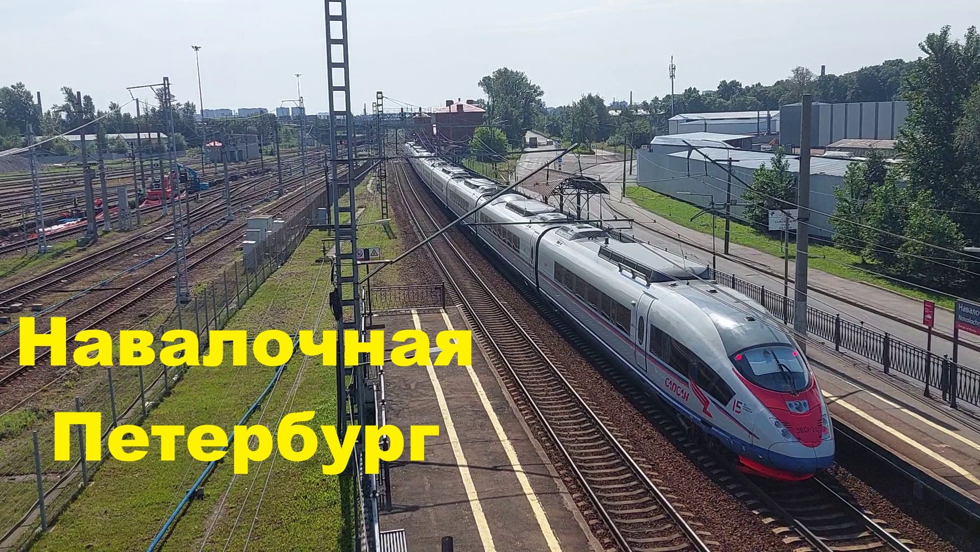 Скоростной поезд Сапсан пролетает платформу "Навалочная" в Санкт-Петербурге