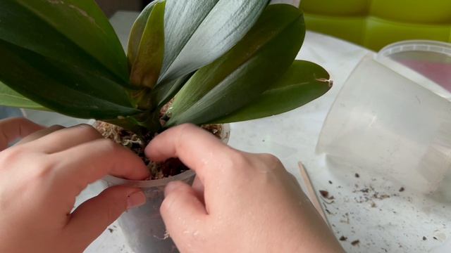 Пересадка орхидеи после обработки. Жалко выкидывать цветоносы! Буду растить детку!