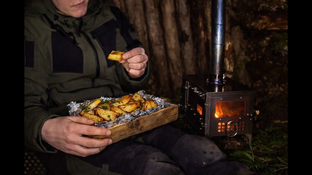 Выживание в одиночку: сооружение ТЕПЛОГО укрытия и приготовление пищи на ДРОВЯНОЙ печи