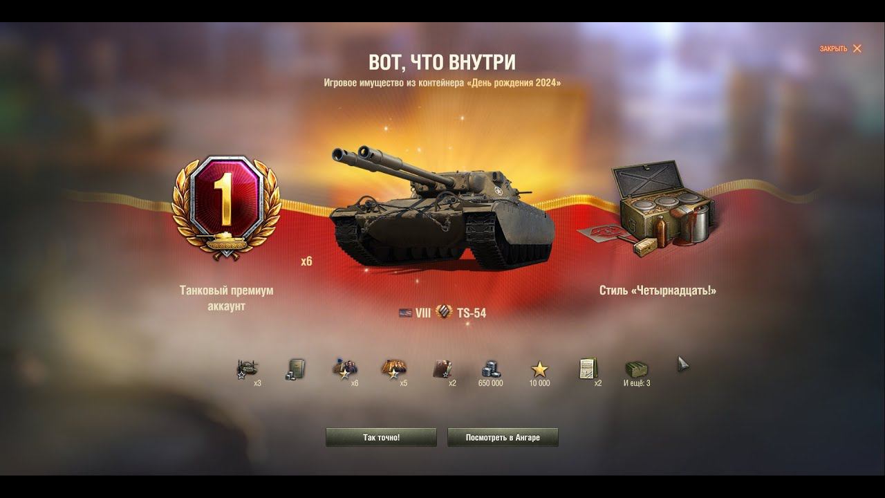 Дата: 10 августа 2024 г. 0:15 Открыто: Контейнер День рождения 2024 (x15) Получено имущество: Добавлено дней Танкового премиум аккаунта: 6 Добавлено свободного опыта: 10 000 Добавлена техника: TS-54 Добавлено кредитов: 650 000 Добавлено: Персональное учебное пособие (x2), Бланк переподготовки (x2) Добавлена декаль «Ведущий каток 1:35» (x3) Добавлена надпись «Дави на газ!» (x3) Добавлен стиль «Четырнадцать!» Добавлена надпись «14 лет ходим В БОЙ» (x3) Личные резервы: Дополнительный опыт за бой (x3), Дополнительные кредиты за бой (x1), Дополнительный свободный опыт и опыт экипажа за бой (x6), Дополнительный свободный опыт и опыт экипажа за бой (x5) Списано: Ключ (x15) Дата: 10 августа 2024 г. 0:17 Открыто: Контейнер День рождения 2024 (x3) Открыть не удалось: Контейнер День рождения 2024 (x17) Получено имущество: Добавлено дней Танкового премиум аккаунта: 1 Добавлена техника: WZ-113-II Добавлено: Бланк переподготовки (x2) Личные резервы: Дополнительный опыт за бой (x1), Дополнительный свободный опыт и опыт экипажа за бой (x1), Дополнительный свободный опыт и опыт экипажа за бой (x1) Списано: Отмычка (x20) ------------- Здесь мои покатушки по игре МИР ТАНКОВ. Не судите строго, играю урывками после работы. :). https://rutube.ru/channel/23544308 Всем добра :) и удачи на полях сражений! :) --------------------- http://wotreplays.ru/uploader/anpetr33/id/414778 --------------------- --------------------- Мой канал на РУТУБе ★ https://rutube.ru/channel/23544308 --------------------- Мой канал на твитче ★ https://www.twitch.tv/anpetr33 --------------------- Мой канал на ЮТУБе ★ https://www.youtube.com/channel/UCPZbvH8TEAkNYXJClIHbgZQ --------------------- Поддержать стримера ★ http://bit.ly/2g49x6x