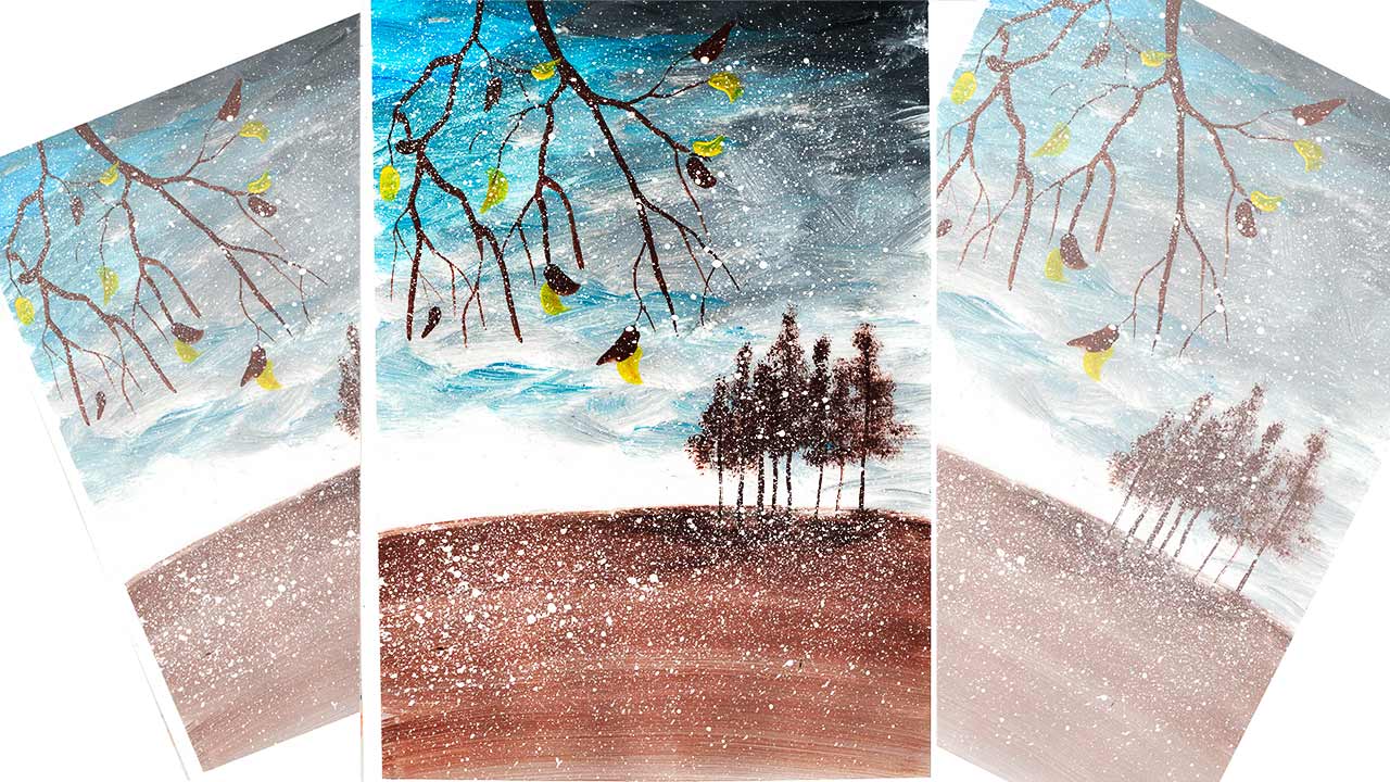 Как легко нарисовать первый снег. Рисуем позднюю осень. Правополушарное рисование.