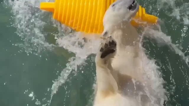 МЕДВЕДЬ БЕЛЫЙ ИГРА С МЯЧОМ В БАССЕЙНЕ