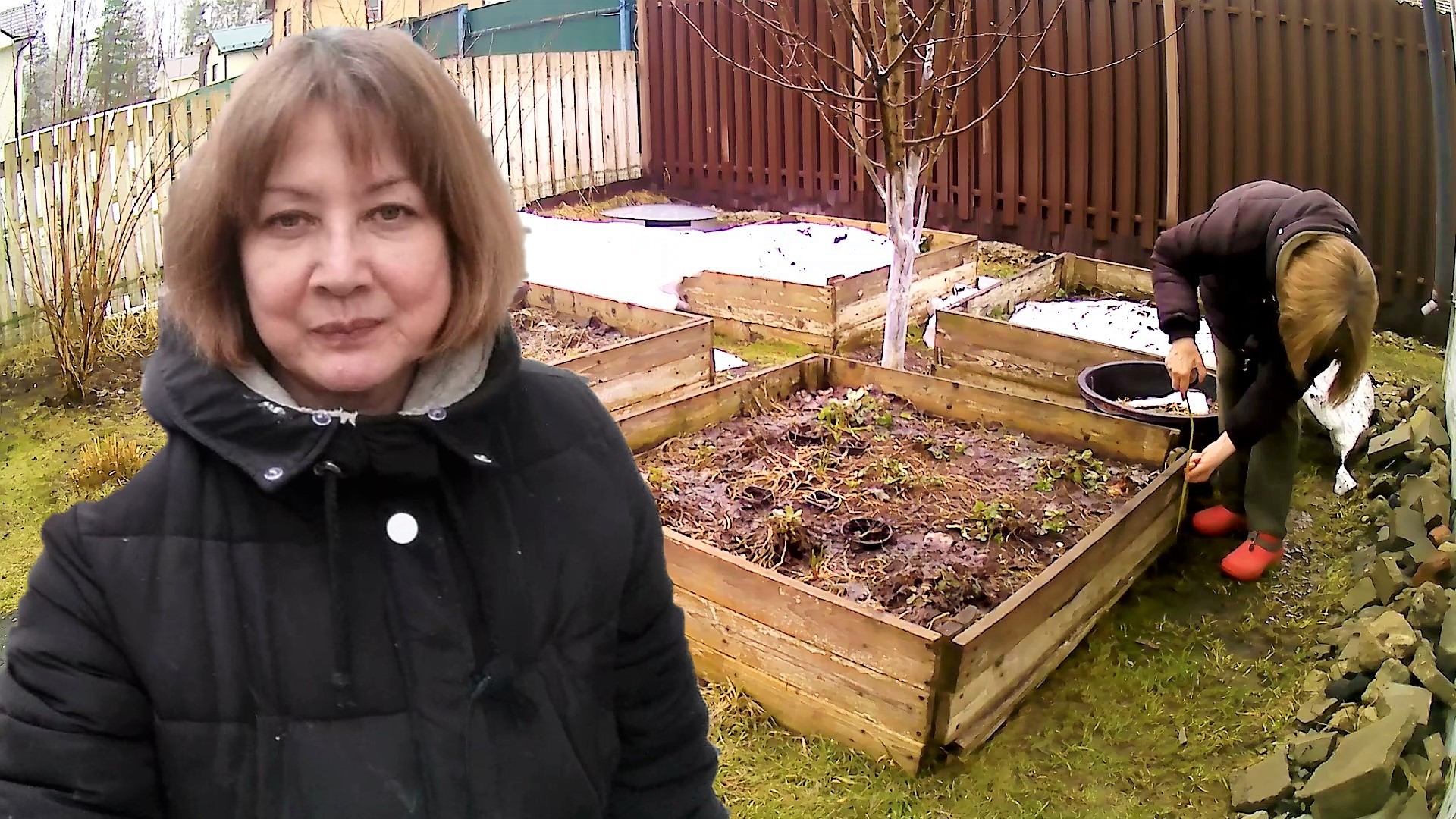 Из-за большого количества снега, развалилсь деревянные высокие грядки. Срочно ремонтирую, иначе землю размоет дождь.