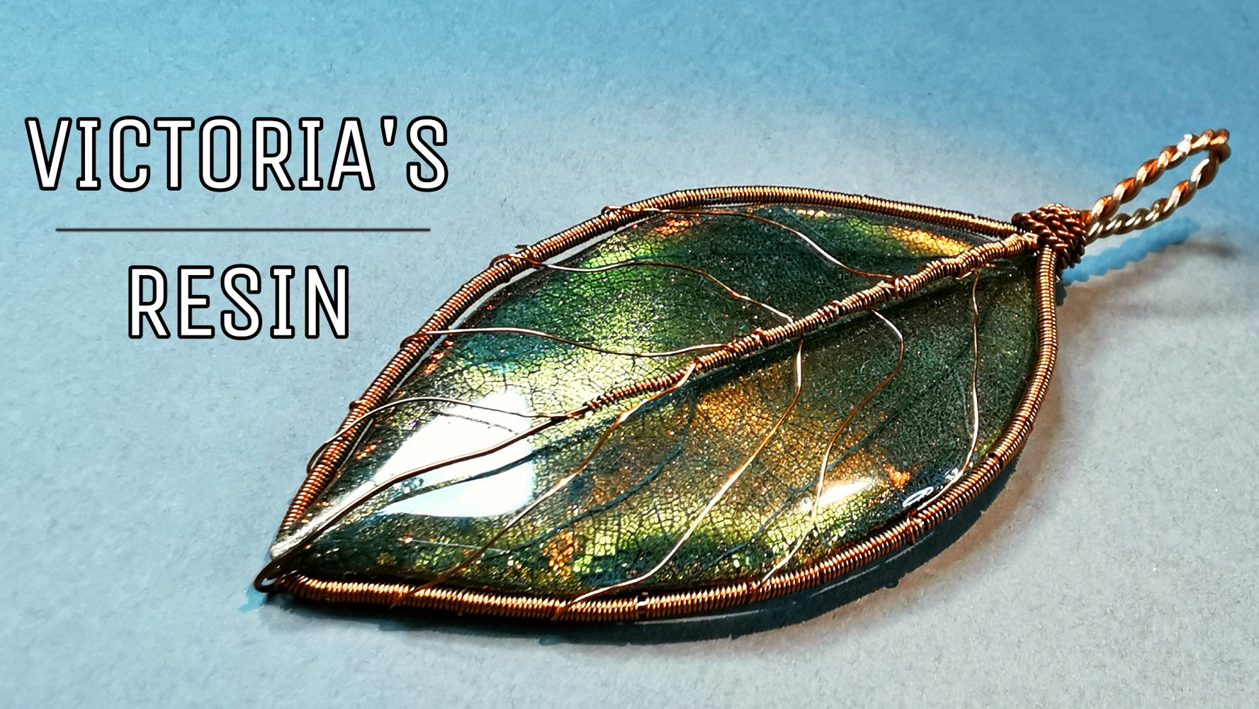DIY кулон-дуохром из УФ смолы со скелетированным листом в проволочной оплетке