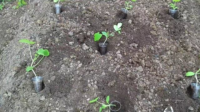 Высаживаю рассаду кабачков на грядку