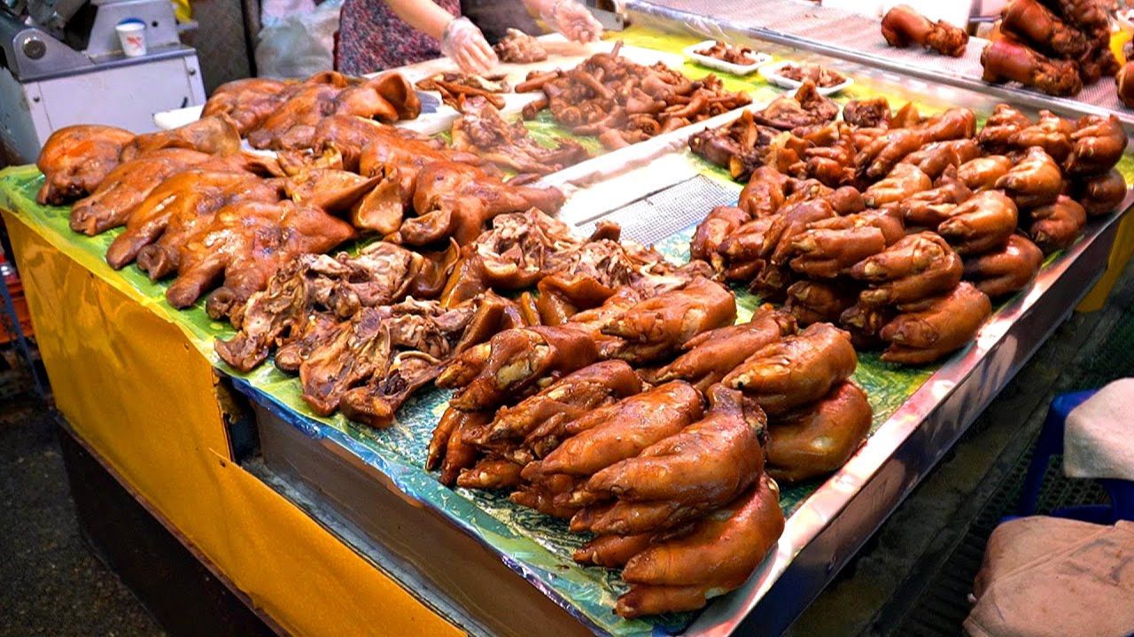 Королевские свиные ножки, свиной хвост, нарезанная свиная грудинка / корейская уличная еда
