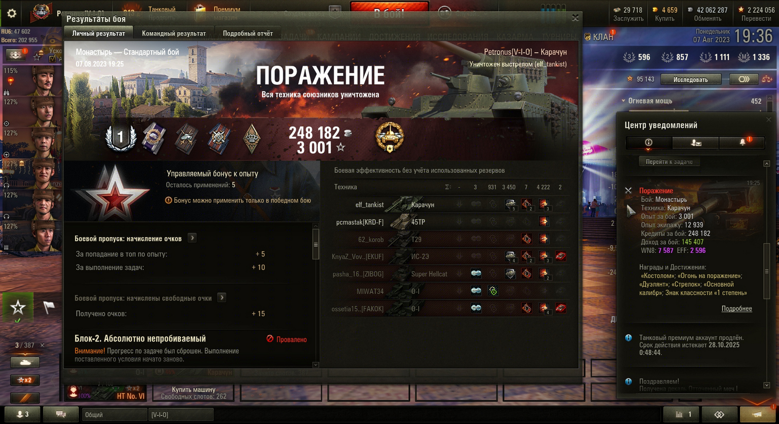 2023.08.07 Карачун, Монастырь, 4222урон, 3450заблочено, 2фраг