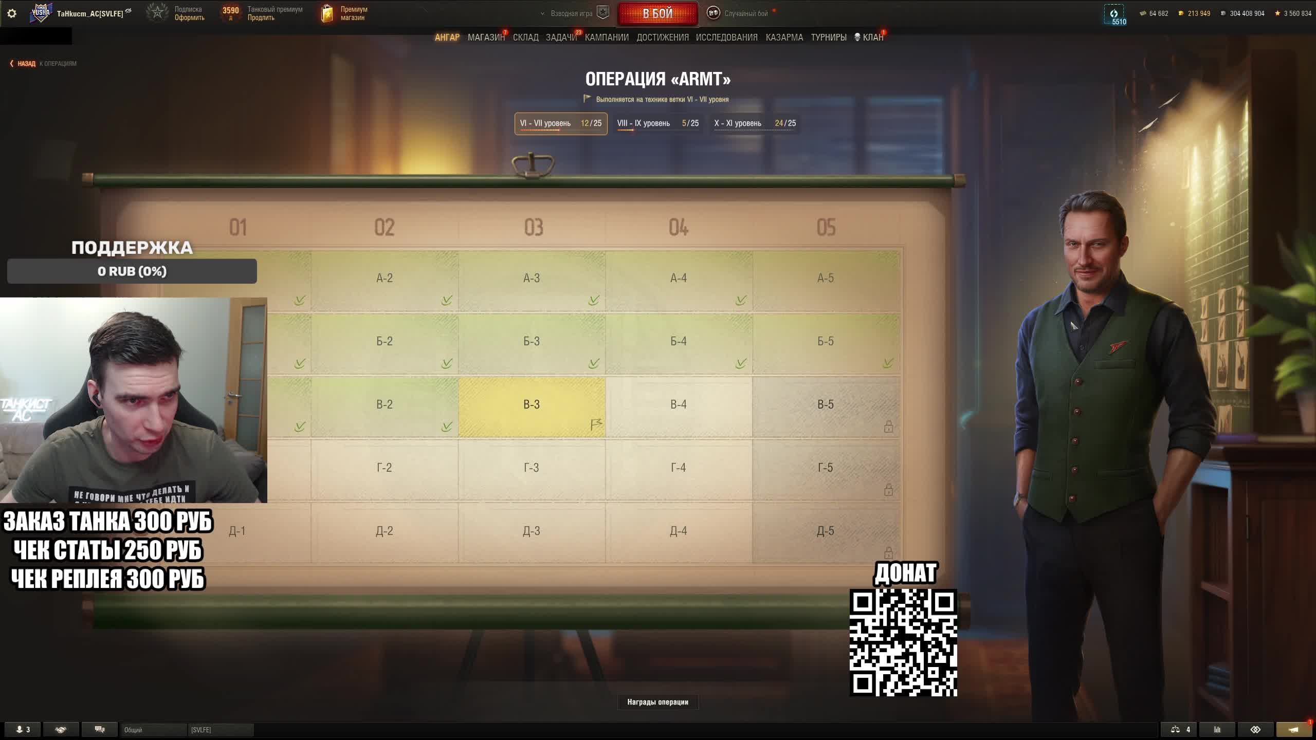 Поддержать стримера http://www.donationalerts.ru/r/tahkucm_ac Сбер без комиссии 2202 2062 2408 9735 напишите в чате, чтобы проверил Telegram https://t.me/TaHkucm_AC Канал VK Play Live https://vkplay.live/tahkucm Канал Бусти https://boosty.to/tahkucm Канал на трово https://trovo.live/TaHkucm_AC Канал Яндекс Дзен https://dzen.ru/id/62355e95d406852937d33526 Группа Вконтакте https://vk.com/tahkucm_ac Оборудование и модернизации на все танки https://docs.google.com/spreadsheets/d/16koQOrtKQKQrAy2Pgfm6GBeG8bA1tJP_7Vm78knwUXA/edit#gid=422106233 Настройки игры в скринах https://dzen.ru/a/YmFvHhJ9yi3rZO5M Моды со скринами установки https://vk.com/topic-136212047_47639792 По поводу рекламы писать в личку https://vk.com/v_xarlamow Всем привет! Меня зовут Виктор, мой ник TaHkucm_AC. На моем канале стрим мира танков каждый день с 8 или 9 по мск. Так же иногда стримлю вечером в произвольное время, чтобы не пропустить подпишитесь на оповещения в телеге или вк (ссылки выше). Играю в танки с декабря 2011 года, а стримить начал в начале 2017 года. Во время стримов общаюсь с чатом, помогаю советами по игре, объясняю тактику. Средняя статистика 65% побед и 4-5к вн8. Фан кланы SLPFR - Командиры marmyn и artlay - из требований только то, чтобы вы часто играли в танки. Укреп 10 уровня. Участвуют в ивентах на ГК, как минимум чтобы собрать пропуск на аукцион. L-DS - Командир DarkSpawn13. Укреп 10 уровня, плюхи по кд SVLFE - Командир Shadowlions. Требуется Team Speak (программа связи) для взводов и клановых покатушек. Участвуют в ивентах на ГК, как минимум чтобы собрать пропуск на аукцион. укреп 10 уровня