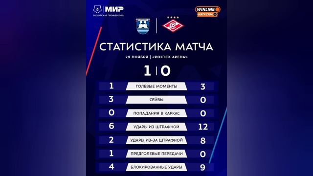 После матча Балтика- Спартак: статистика// вывод