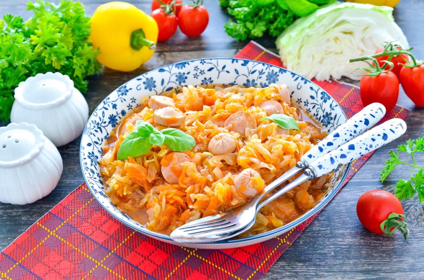 КАК ПРИГОТОВИТЬ ТУШЕНУЮ КАПУСТУ С СОСИСКАМИ В МУЛЬТИВАРКЕ