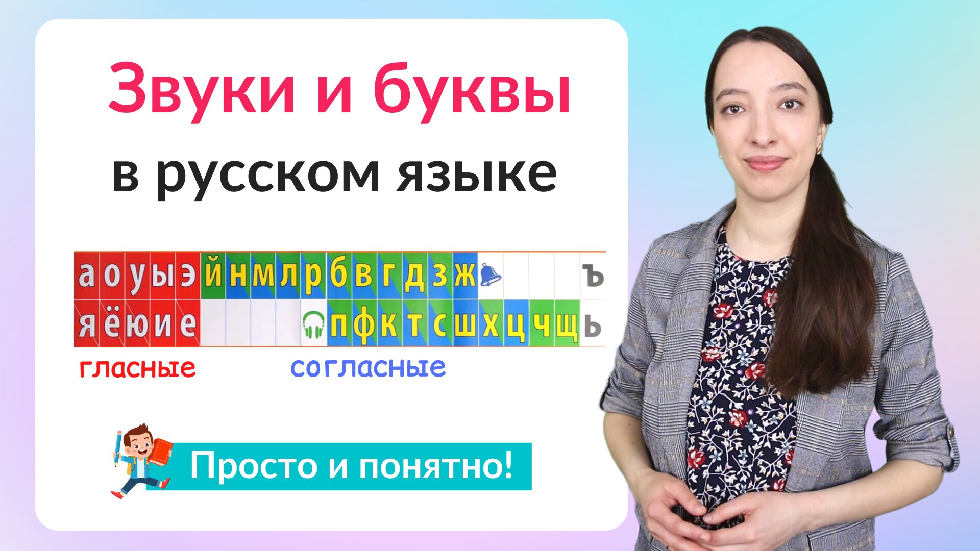 ✅ Видео по теме: Звуки и буквы. Гласные и согласные звуки и буквы. Как различать звуки и буквы? Сегодня начинаем знакомиться со звуками и буквами русского языка. Узнаем какие звуки называются гласными, какие согласными, как отличать глухие согласные от звонких, а твёрдые от мягких. Делитесь и с друзьями, если видео для вас полезно! Таймкоды для удобства просмотра: 0:00 - Поговорим о звуках и буквах русского языка 0:25 - Звуки в жизни 0:40 - Звуки в русском языке 1:11 - Буквы в русском языке. Алфавит 1:44 - Лента букв и звуков 2:01 - Гласные буквы и звуки 3:11 - Буквы Е, Ё, Ю, Я 4:13 - Количество гласных букв и звуков 4:24 - Согласные буквы и звуки 4:56 - Звонкие согласные буквы и звуки 5:11 - Глухие согласные буквы и звуки 5:44 - Твёрдые и мягкие согласные звуки 6:29 - Ь и Ъ знак 6:40 - Каким цветом обозначать гласные, твёрдые согласные и мягкие согласные звуки 8:11 - Различие звуков и букв 8:24 - Звуки и буквы русского языка - общая таблица! ✓ Понравилось? Подпишись!