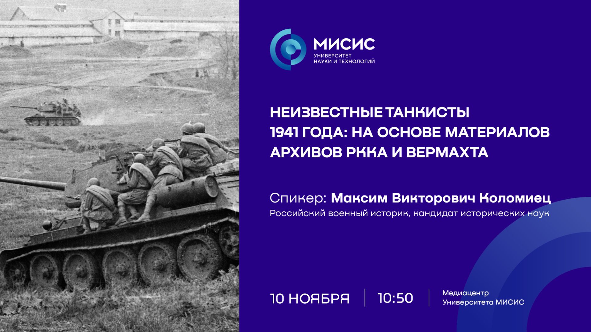 Лекция «Неизвестные танкисты 1941 года: на основе материалов архивов РККА и вермахта»