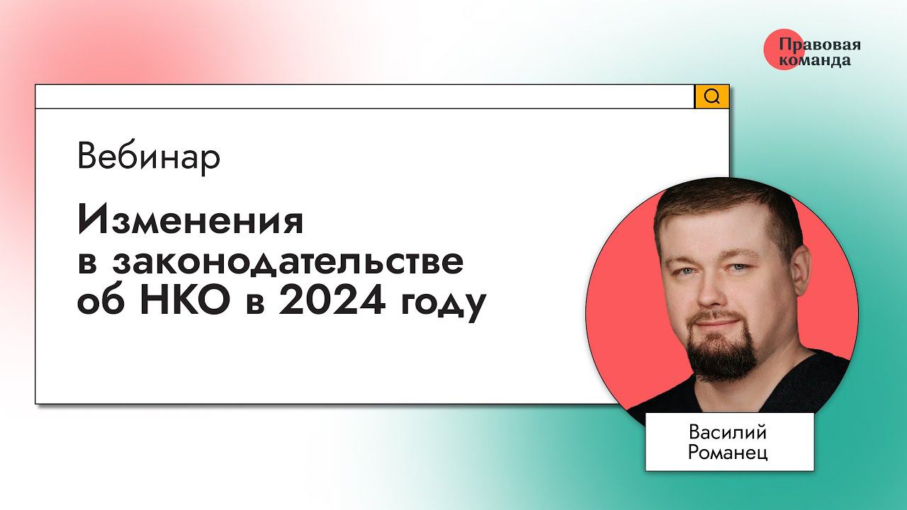 Вебинар провел юрист «Правовой команды» Василий Романец. ► Читайте также: Обзор изменений некоммерческого законодательства за 2023 год: https://ngo-law.ru/0124/obzor_2023. ► Есть вопросы? Задайте их «Правовой команде» на бесплатной персональной консультации: https://ngo-law.ru/gethelp. --------------------------------------------------------------------------------------------------------------------------- Подписывайтесь на «Правовую команду»: «ВКонтакте» ►https://vk.com/lawteamrussia Telegram ► https://t.me/lawteamrussia
