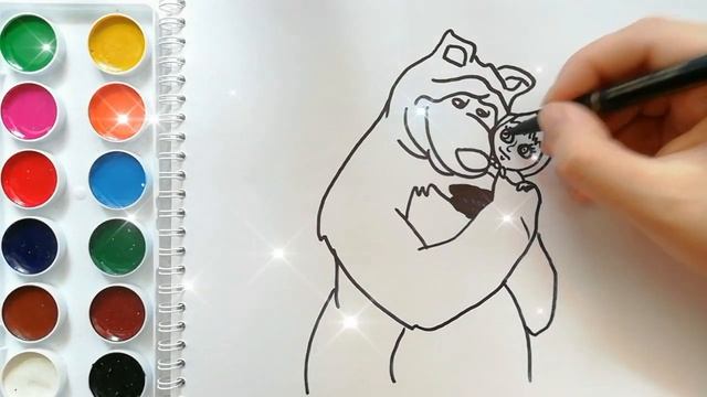 Раскраска для детей МАША И МЕДВЕДЬ. МИШКА. Мультик-раскраска. Учим цвета.