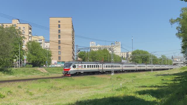Электропоезд ЭП2Д-0043, перегон Подмосковная - Тушино, г. Москва (май 2024г.)